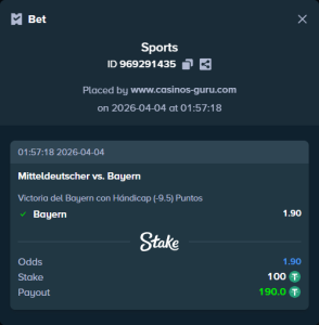 Aunque el Mitteldeutscher ha mostrado fortaleza en casa, la diferencia de calidad y la urgencia del Bayern por ganar hacen que una victoria visitante sea la opción más probable. Esta apuesta ofrece una menor rentabilidad pero una mayor probabilidad de acierto.