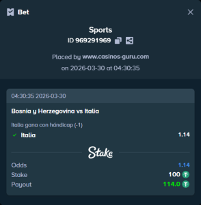 Italia gana con hándicap (-1). La cuota ofrecida para esta apuesta refleja la expectativa de una victoria italiana con una diferencia de al menos dos goles.