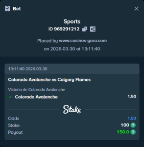• Apuesta Principal: Victoria de Colorado Avalanche (cuota 1.50)
