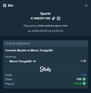 Las cuotas para este partido reflejan la diferencia en el nivel de confianza de ambos jugadores. Mientras que Moutet parte como favorito con una cuota de 1,38, Trungelliti presenta una cuota de 3,04, lo que refleja el alto valor que tiene el argentino como “outsider”. Sin embargo, considerando su impresionante rendimiento reciente, la apuesta más segura es apostar por un hándicap a favor de Trungelliti (+4) a cuota 1,75.