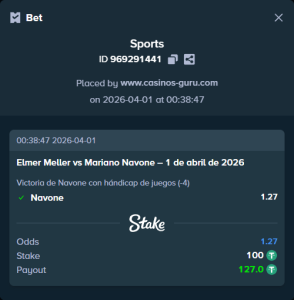 Casa de apuestas P1 (Meller) P2 (Navone) Bono para nuevos jugadores