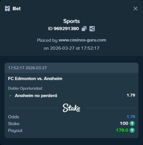 Una apuesta de “doble oportunidad” cubre dos de los tres posibles resultados de un partido (victoria local, empate, victoria visitante). En este caso, “Anaheim no perderá” cubre la victoria de Anaheim o un empate.