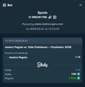 Las casas de apuestas reflejan la clara favorita que es Jessica Pegula, con cuotas que rondan el 1.15, mientras que la victoria de Yulia Putintseva se paga a alrededor de 5.80. El mercado de totales también presenta opciones interesantes, con el más de 19.5 juegos a 2.04 y el menos a 1.80.