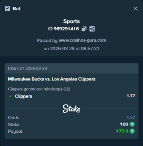 - Apuesta principal: Clippers ganan con hándicap (-5,5) a cuota 1.77.