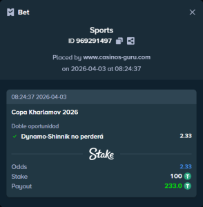 Dynamo-Shinnik no perderá (Doble Oportunidad) con una cuota de 2.33.