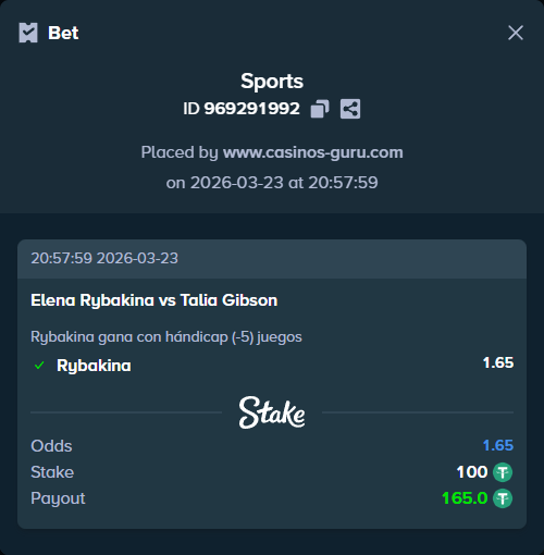 - Apuesta principal: Rybakina gana con hándicap (-5) juegos a cuota 1.65.