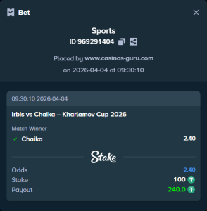 Las casas de apuestas ofrecen cuotas de 2.51 para la victoria de Irbis, 3.90 para el empate y 2.40 para Chaika. El total de más de 4.5 goles se sitúa en 1.81, mientras que el total por debajo es de 1.92.