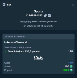 - Apuesta de riesgo (alta cuota): Hándicap Lakers -10,5, cuota 2,10