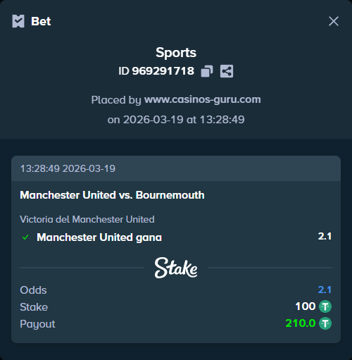 Victoria del Manchester United. Apuesta Principal: Manchester United gana.
