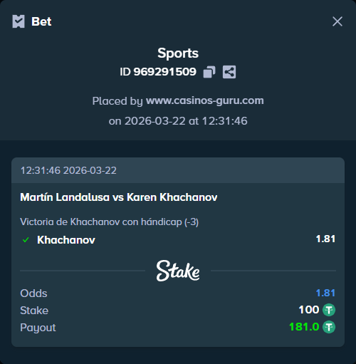 Las cuotas para este partido son bastante interesantes. Actualmente, Landalusa tiene una cuota de 3.04, mientras que Khachanov se ofrece a 1.38. Se recomienda considerar el total de juegos por encima de 22.5, con una cuota de 1.85, dado que ambos jugadores tienen la capacidad de alargar los sets.