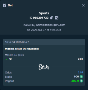 Matida Zelvia buscará mantener su buena racha, mientras que Kawasaki intentará recuperarse. Apuesta recomendada: Más de 2.5 goles.