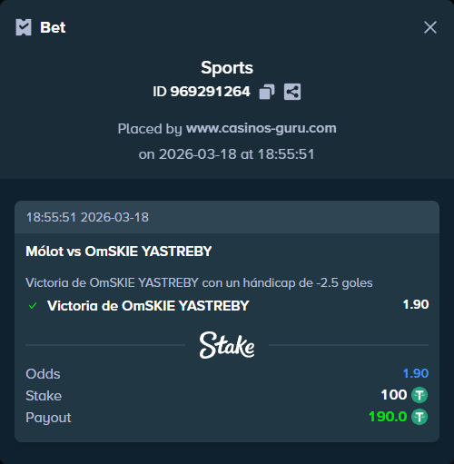 - Apuesta principal: Victoria de OmSKIE YASTREBY con un hándicap de -2.5 goles a cuota de 1.90.