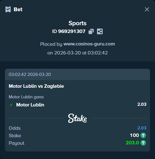 - Apuesta principal: Motor Lublin gana (cuota 2.03)