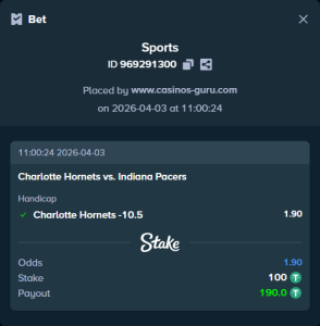 Charlotte Hornets domina a Indiana Pacers con una victoria contundente. Apuesta principal: Charlotte Hornets con hándicap (-10.5) puntos.