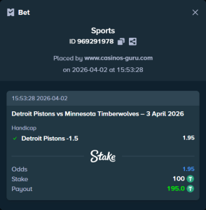 Apuesta de Riesgo (Alta Cuota): Más de 228.5 puntos totales en el partido. La cuota es de 1.78. Ambos equipos tienen un potencial ofensivo considerable y, aunque los Pistons han mostrado solidez defensiva, los Timberwolves también son capaces de anotar en grandes cantidades. Un partido abierto y de ritmo rápido podría superar esta línea.