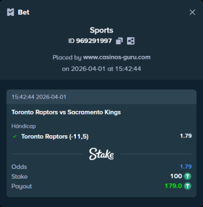 • Apuesta principal: Toronto Raptors (-11,5) puntos – cuota 1,79
