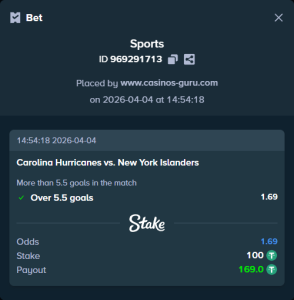 Victoria de Carolina Hurricanes y Más de 5.5 Goles en el Partido