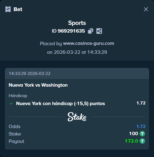 Las casas de apuestas han establecido a Nueva York como favorito con una cuota de 1,03, mientras que Washington tiene una cuota de 12,50. Una apuesta segura sería optar por Nueva York con un hándicap de -15,5 puntos, dado el claro contraste en forma y rendimiento.