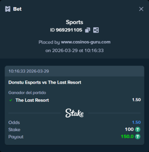 Con base en el análisis anterior, nuestra recomendación es apostar por la victoria de The Last Resort con una cuota de 1.50. Consideramos que su reciente éxito en LAN y la confianza que han ganado son factores determinantes que les darán ventajas sobre Donstu. Sin embargo, Donstu podría ofrecer una sorpresa si logra superar sus problemas de consistencia y ejecutar un buen plan de juego.