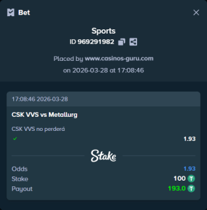- Apuesta principal: CSK VVS no perderá (1.93)