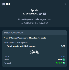 Las casas de apuestas ofrecen cuotas de 3.02 para Nueva Orleans y 1.45 para Houston. En términos de totales, el límite está establecido en 228.5 puntos, con una cuota de 1.97 para el total superior. Sin embargo, la tendencia sugiere un partido más defensivo, por lo que apostamos por un total inferior a 227.5 puntos a una cuota de 1.78.