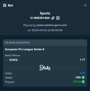 La apuesta principal es una victoria de STATE con una cuota de 1.77. Este pronóstico se basa en la solidez del equipo danés y la inconsistencia de ex-Zero Tenacity. Aunque la posibilidad de una sorpresa siempre existe, es probable que STATE se imponga en este enfrentamiento.
