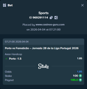 La apuesta “segura” es aquella que tiene una alta probabilidad de cumplirse, aunque la cuota sea menor. En este caso, la victoria simple del Porto se considera segura debido a su dominio.