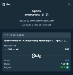 - QPR 6:1 Portsmouth (Campeonato) – 21/03/26