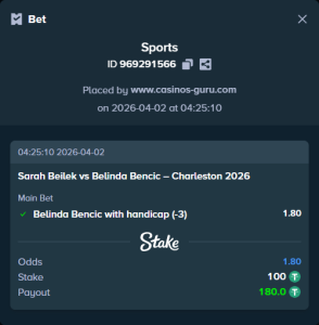 - Apuesta Principal: Victoria de Belinda Bencic con hándicap (-3) a cuota 1.80.