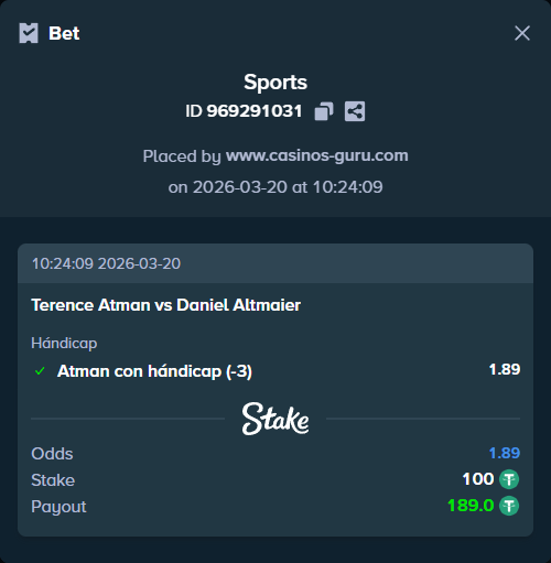 - Apuesta principal: Atman con hándicap (-3) a cuota de 1.89.