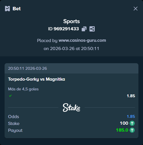 Victoria de Magnitka con cuotas de 2,75. Dado su rendimiento reciente, apostar a su victoria parece ser una opción razonable.