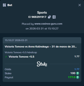 - Apuesta principal: Victoria Tomova con hándicap (+5.5) a cuota de 1.77. Tomova ha demostrado tener el nivel para competir y, considerando que su rendimiento ha mejorado, es probable que mantenga el partido competitivo.
